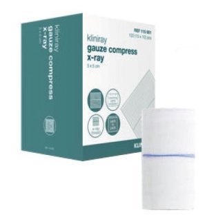 Kompressen X-ray steriel worden gebruikt bij operatieve ingrepen ten behoeve van absorptie van vocht. Het kompres is voorzien van een X-Ray draad om het product te kunnen lokaliseren met behulp van röntgenstralen. Kompressen met X-Ray draad worden toegepast bij operatieve ingrepen voor de absorptie van vocht. Door de X-Ray draad kan het product gelokaliseerd worden met behulp van rõntgenstralen. In verschillende afmetingen leverbaar. Operatie gazen zijn niet bedoeld om volledig uitgevouwen gebruikt te worden. Het aantal keer dat een gaas uitgevouwen mag worden hangt af van de afmeting en het aantal lagen. Zorg er altijd voor dat de onafgewerkte zijde van het gaas naar binnen omgevouwen blijft. De kans dat deze onafgewerkte zijde (de snijrand van het gaas) partikels afgeeft is namelijk aanwezig en dit is onwenselijk. Hoewel er geen officiële richtlijnen bekend zijn hiervoor, raden wij aan om deze werkwijze op te nemen in een werkinstructie. Als u gazen uitgevouwen wilt gebruiken dan zijn hiervoor speciaal rondom gestikte kompressen (zie buikgazen) ontwikkeld.