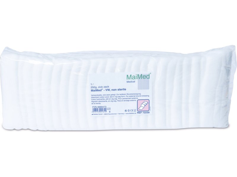 Watte zigzag verpakt wordt in de medische sector voor verschillende toepassingen gebruikd. Oa als absorptie- en opvulmateriaal bij wondzorg.